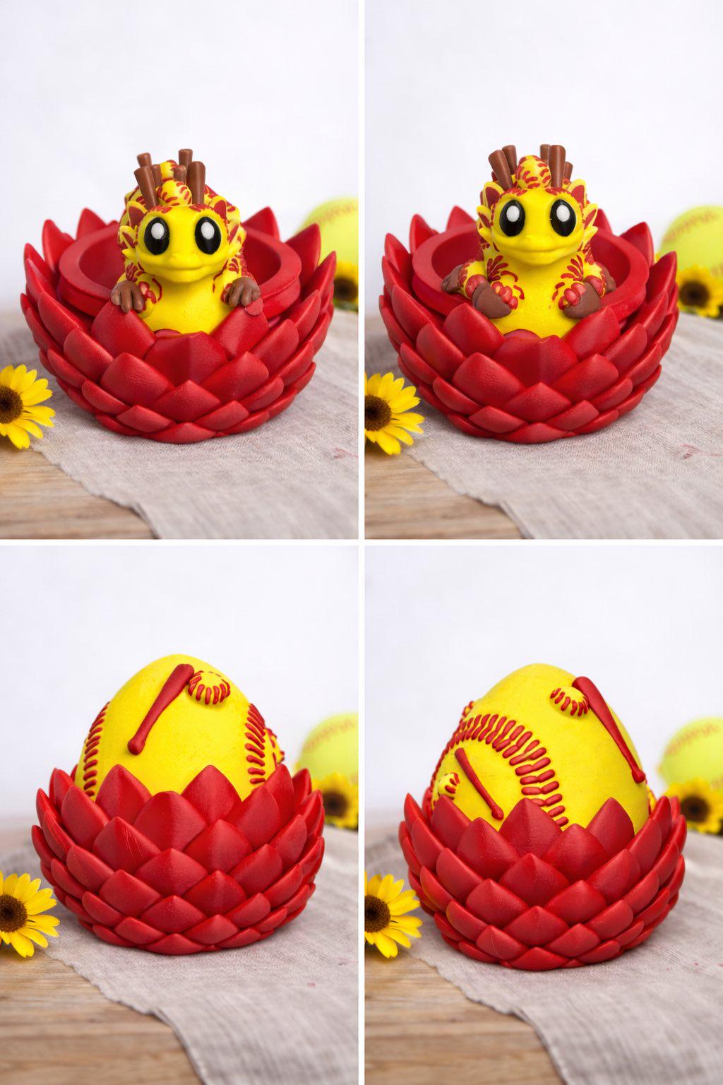Our Softball Dragon hatches from a bright yellow softball-themed egg, making it the perfect gift for players, coaches, teams, and proud softball families.