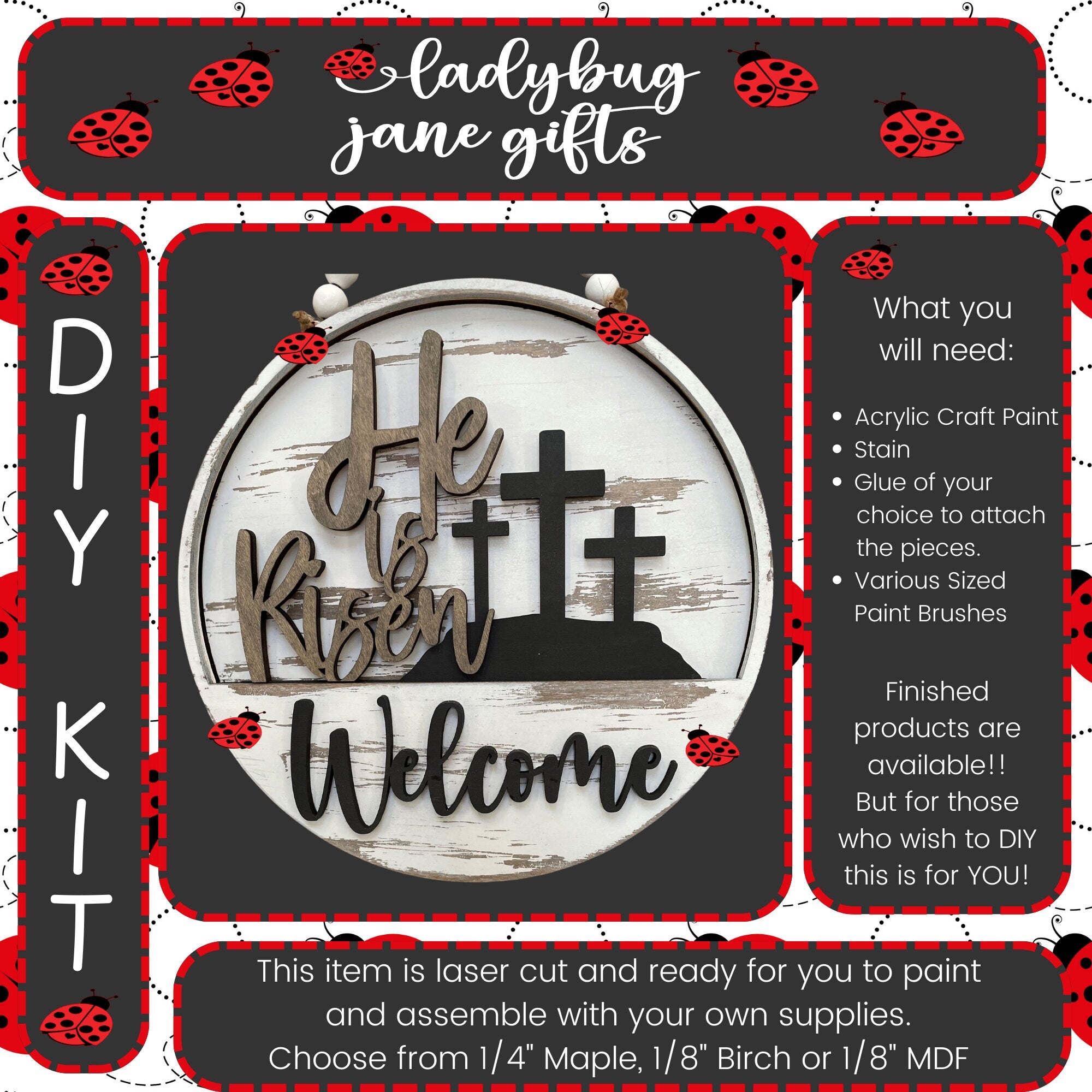 🐞 This item is laser cut and ready for you to paint and assemble with your own supplies.
