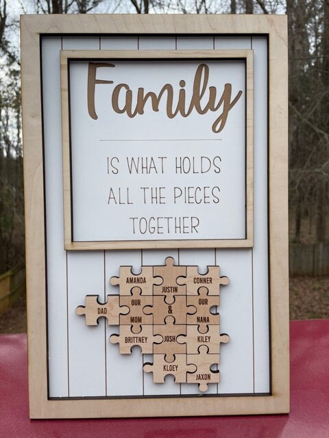 This family sign can be customized with 1 - 20 puzzle pieces.