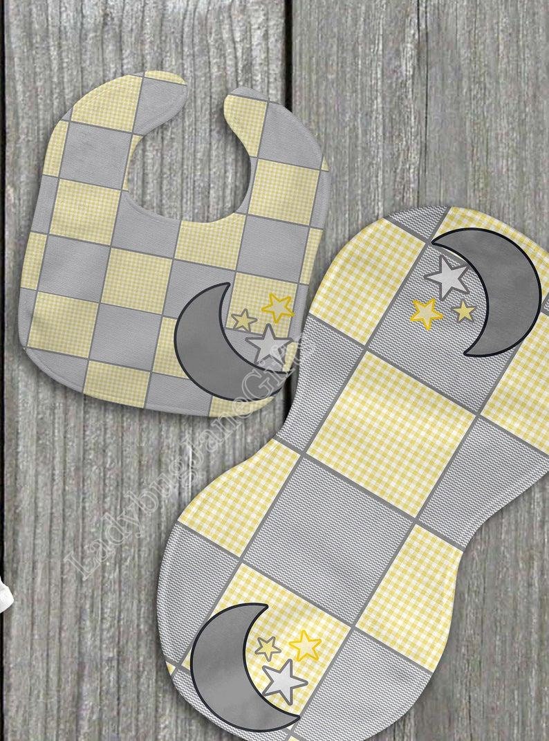 Baby Yellow Grey Moon Gift for Girl or Boy - Bib, Burp or Set Yellow Grey Moon