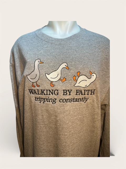 Walking by Faith, Tripping Constantly Embroidered Shirt Sweatshirt Hooded Sweatshirt